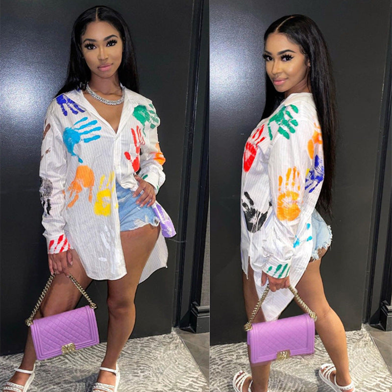 HANDS, the expertly crafted multi hand print shirt. Made with a button down design, this shirt offers both style and convenience. With its versatile pattern, it's the perfect addition to any wardrobe. Elevate your look with HANDS and make a statement with every step.