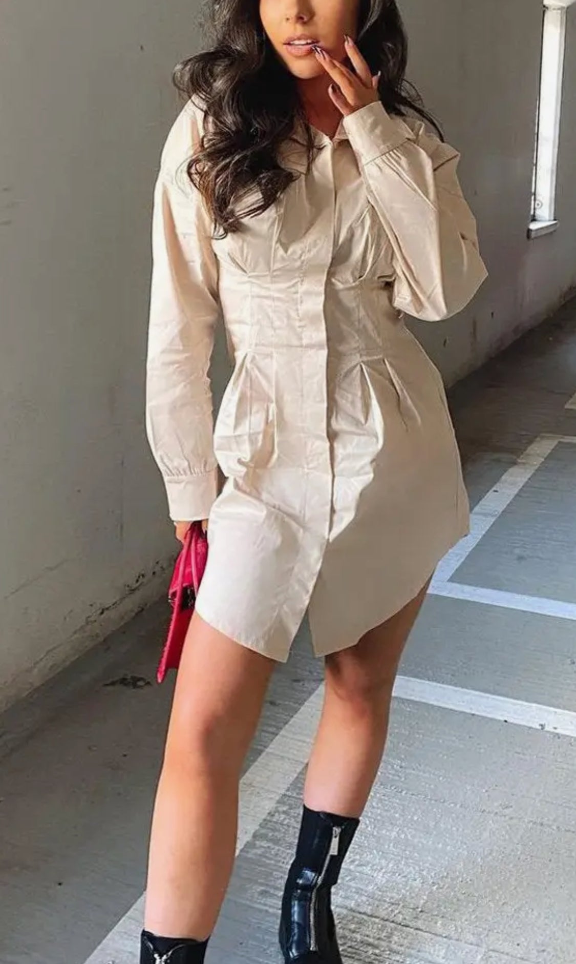 The LARITZA shirt features a tailored waist design and a classic button-down silhouette in a versatile stone color. This shirt is engineered for a flattering fit, enhancing comfort and professionalism in various settings. Its neutral hue allows for easy coordination with multiple outfits, making it a practical choice for any wardrobe.
